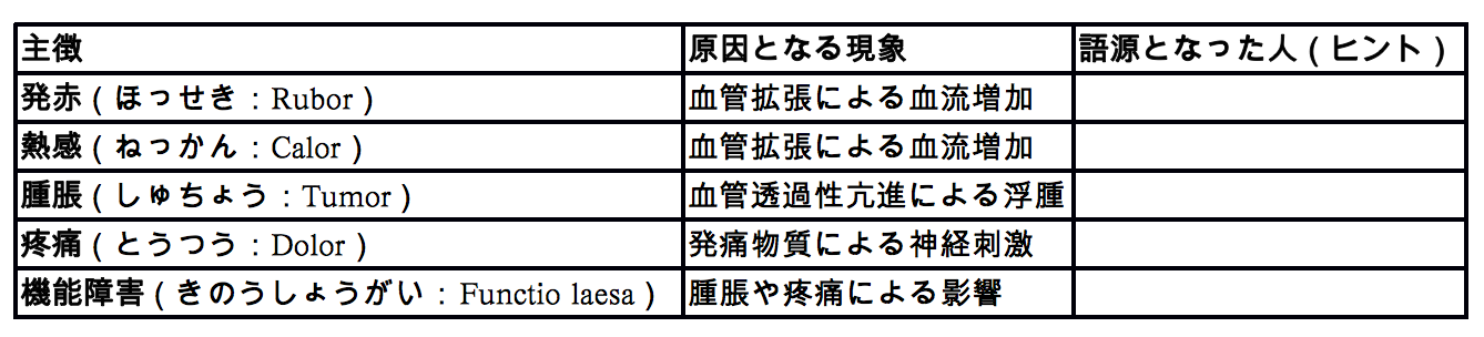 炎症の五大主徴は基本中の基本です。