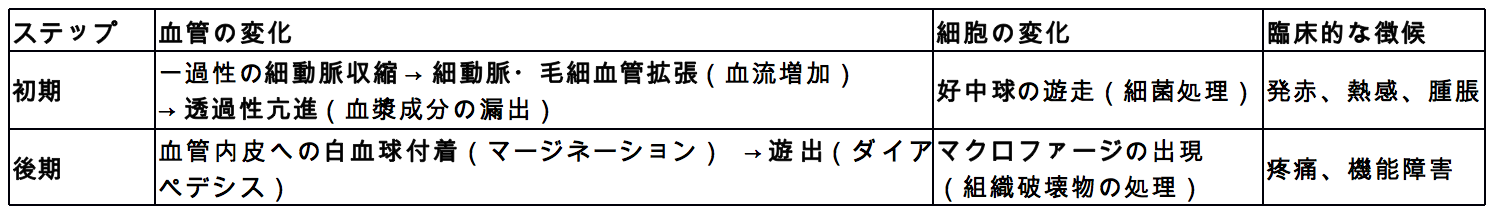 炎症の基本は、**「損傷 → 血管の変化 → 細胞の変化」**という流れです。